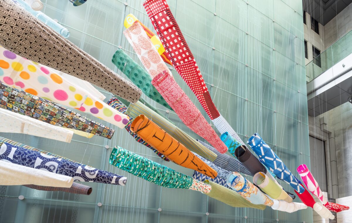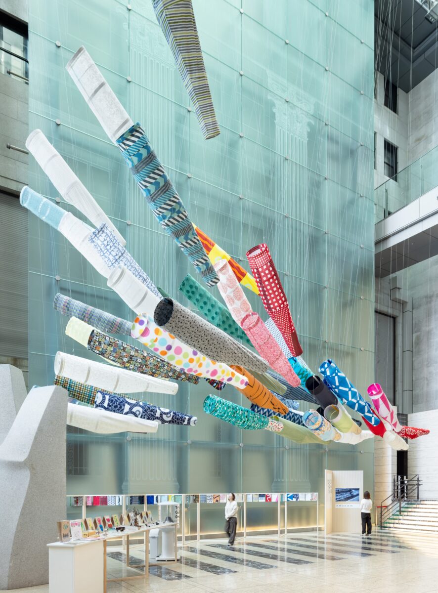 日本橋は、伝統と革新が交錯し、数多くのクラフト(手工芸)が息づく街。昨年、須藤はそんな日本橋での展示に際し、従来のNUNOのコレクションに加えて、日本橋界隈のものづくり企業とのコラボレーションによる特別な「こいのぼり」を制作しました。