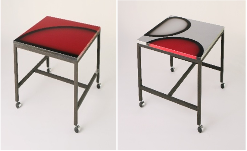 ヤマハ発動機が長年培ってきた塗装技術「サンバースト塗装」は、職人が手作業で一つひとつ仕上げる伝統的な技法です。現在、この高度な技術を担える職人は同社内でも限られており、ヤマハ発動機では若手への継承に取り組みながら、大切に受け継がれてきました。船場はこの塗装技術に着目し、職人の手仕事を未来へ残すテーブルシリーズを制作しました。