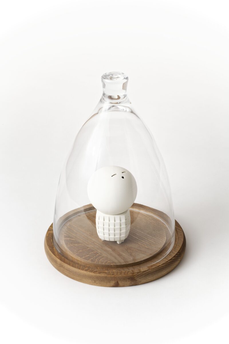 和田 的, 白器香炉「ようこそ!」, 12.7cm×8.0cm, ガラスケース:30.0cm×23.3cm