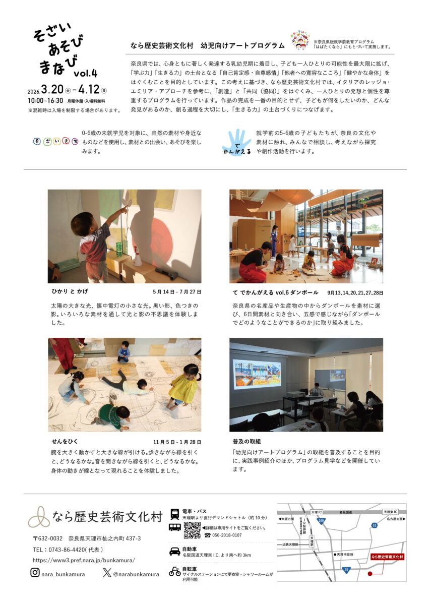 【なら歴史芸術文化村】幼児向けアートプログラム「そざい あそび まなび 展 vol.4」開催