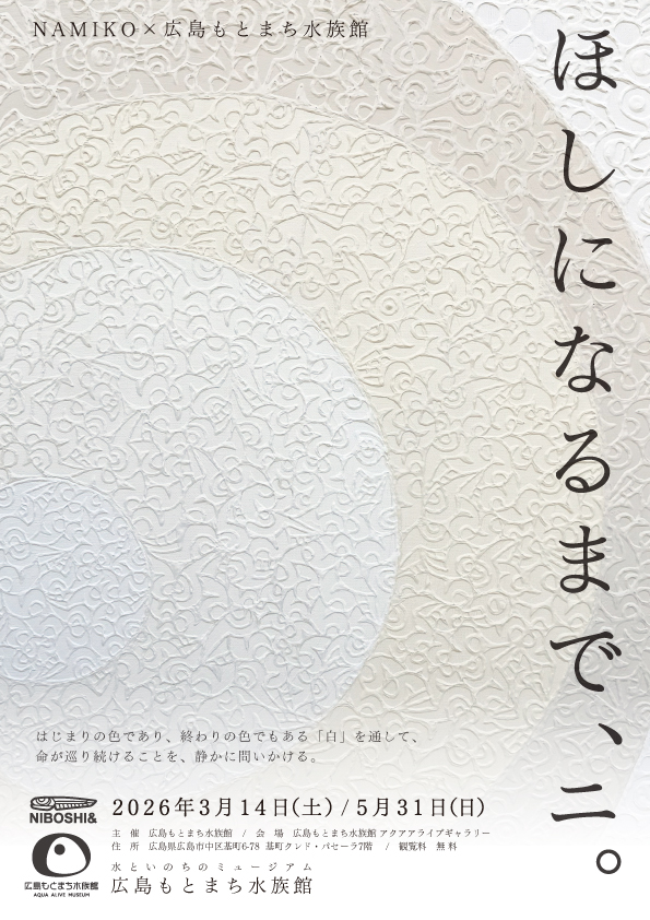 広島もとまち水族館(館長:佐藤文宏 所在地:広島市中区基町6‐78パセーラ7階)は、2026年3月14日(土)より、にぼしに魅了されたアーティスト「NAMIKO」とのコラボ企画展『ほしになるまで、ニ。』を開催します。