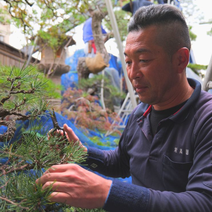 西日本最大級の盆栽園の次代を担い、伝統を継ぎながら、現代の暮らしに調和する盆栽を手掛けている。
