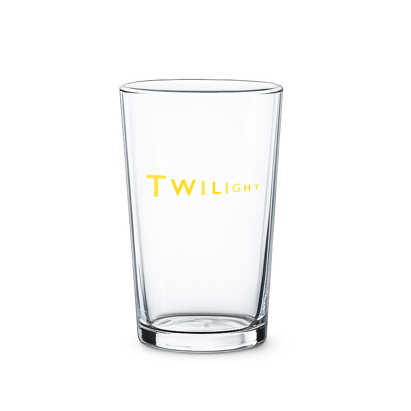 斜光をイメージした黄色のロゴをあしらったビールグラスです。ビールを注ぐと、TWILIGHTの文字が、黄金色のビールと溶けあう様子をお楽しみいただけます。