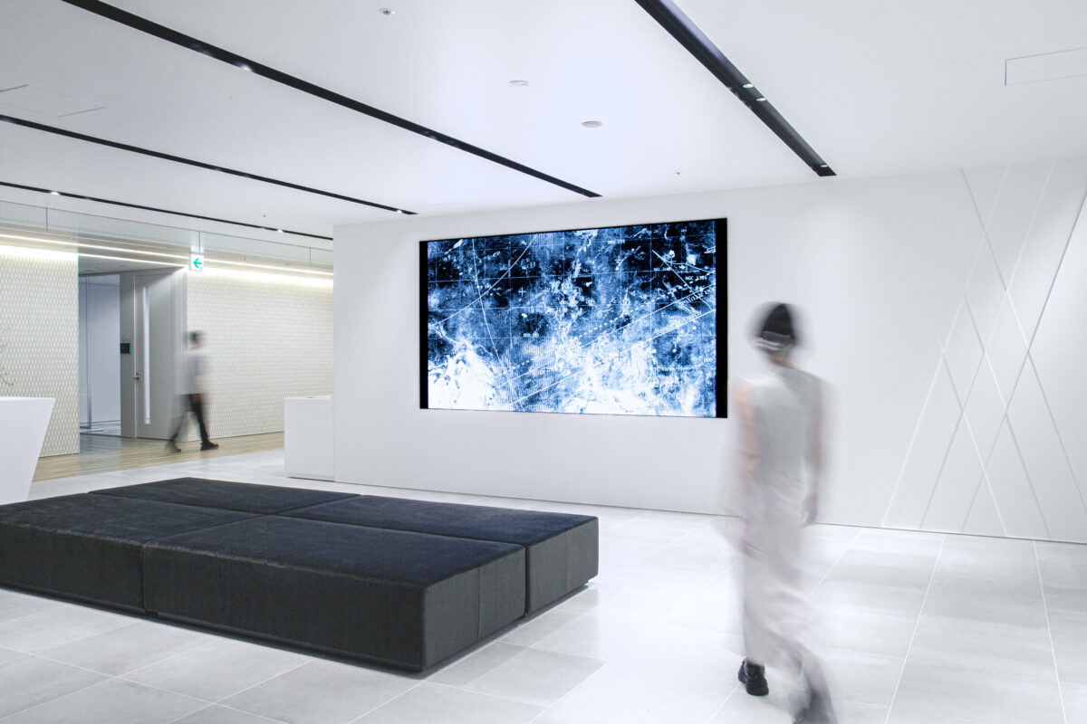 デンソー東京支社のオフィスエントランスのための本作は、奥村が同社の取り組みへのリサーチを重ね、自身の課題意識と重ね合わせて制作されました。企業と表現者の、異なる領域が交差することで立ち上がる新たな視点をご覧ください。