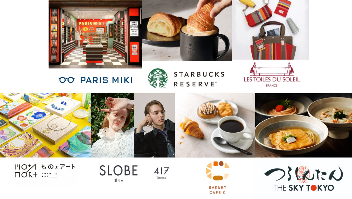 最初にオープンするのは、エンターテイメントスタイルのアイウェアショップ「PARIS MIKI」。続いて、30階からの眺望も楽しめる、スターバックスのカフェベーカリー「スターバックス リザーブ(R) カフェ」。東京ミズマチには、創業160年、南フランスの伝統織物であるソレイユストライプ柄の生地を使用した「Les Toiles du Soleil(レ・トワール・デユ・ソレイユ)」がオープンします。