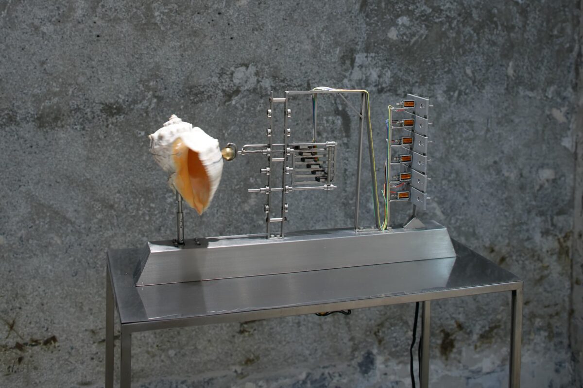 自然の力と機械構造が交差する瞬間に着目し、環境に呼応して動く彫刻作品を制作しています。貝殻や羽根といった生物の抜け殻を用い、自然由来の素材と金属による機械的な要素を組み合わせることで、作品は風や太陽光、雨などの移ろう自然エネルギーを受けながら、揺れ、振動し、かたちを変えていきます。