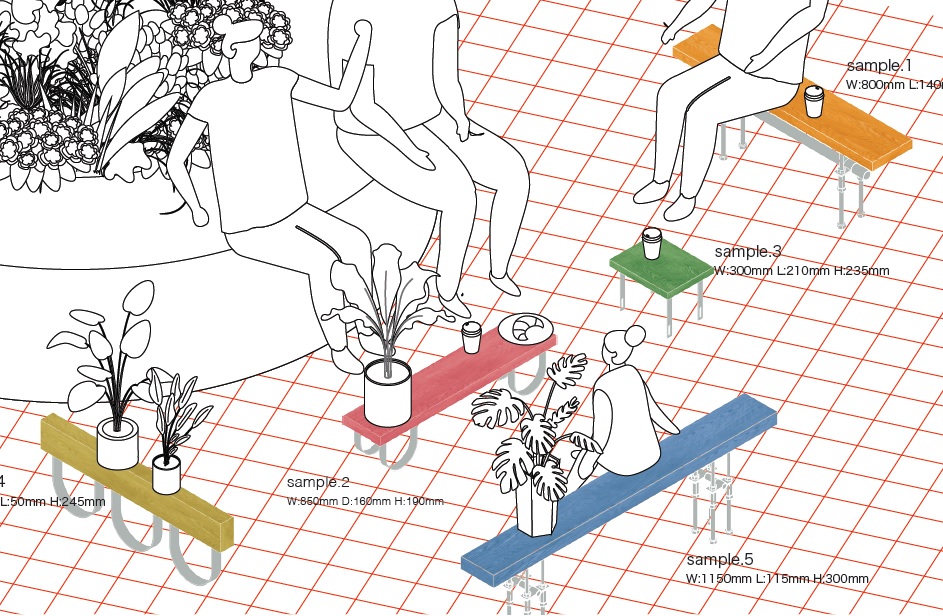 第7回は、2027年国際園芸博覧会へ繋がるコンペとし、「花と緑」をテーマにストリートファニチャーの作品アイディアを募集したところ、国内外より173点の応募をいただきました。実製作された作品は、はまテラス(スカイビルとそごう横浜店間の広場)に設置され、触れたり座ったりの体験を通して、楽しんでいただけます。