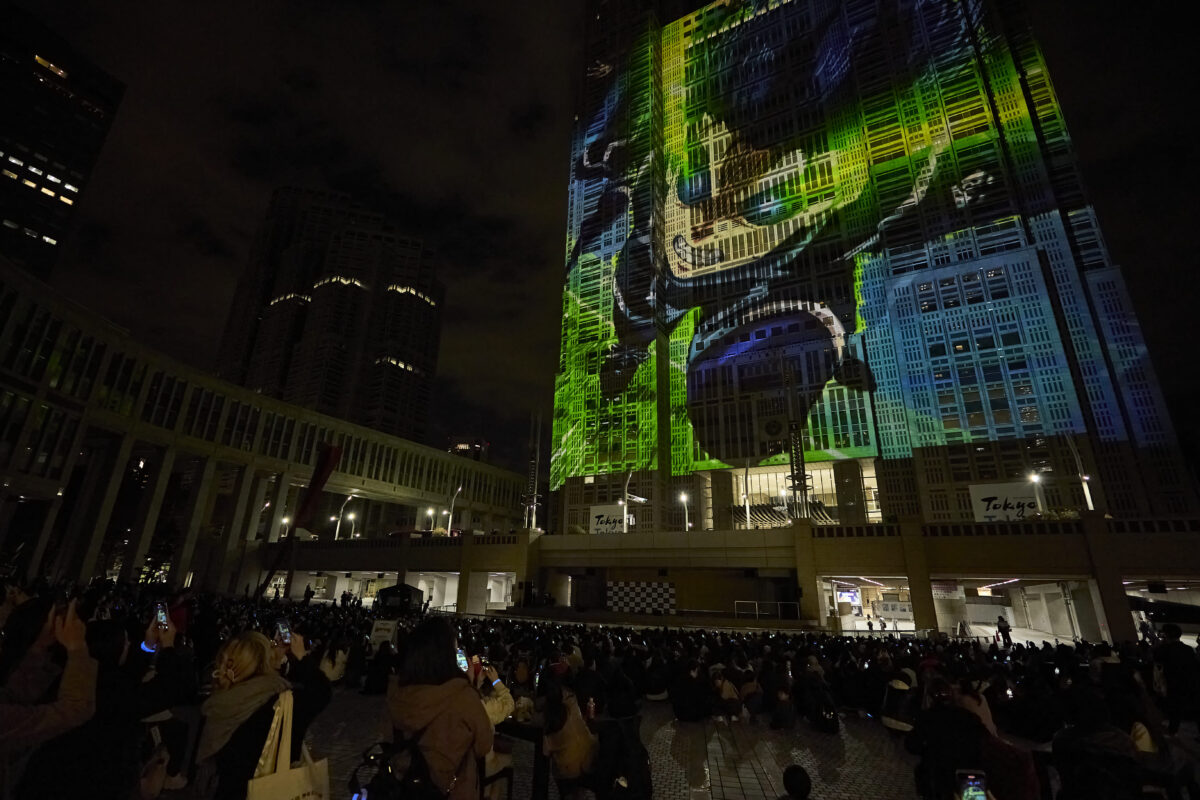 徴的なビジュアルが、光と映像によって立体的に表現され、夜の都庁舎に幻想的な情景が広がって