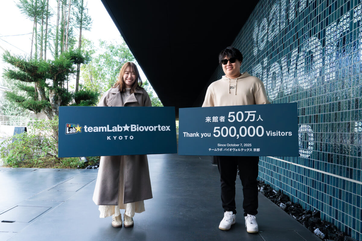 京都市が進める京都駅東南部エリアプロジェクトの一環として、京都市南区にオープンした「チームラボ バイオヴォルテックス 京都」の来館者数が、同館のオープンから5ヶ月となる2026年2月19日(木)をもって50万人を突破(※1)したことをお知らせします。