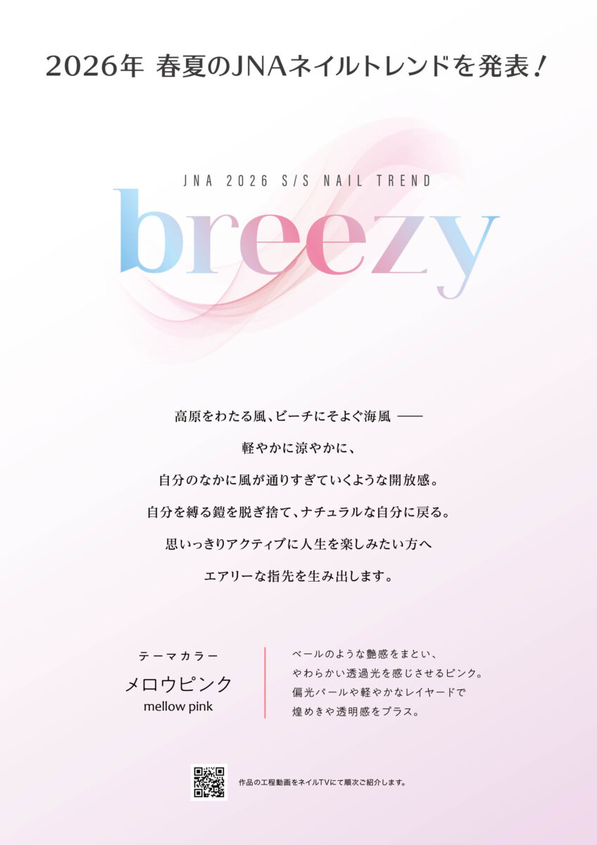 NPO法人日本ネイリスト協会(略称:JNA、所在地:東京都千代田区、理事長:仲宗根幸子)は、2026年春夏のネイルトレンドのテーマを「breezy」とし、このテーマを表現する作品を発表します。