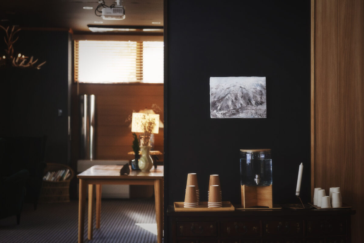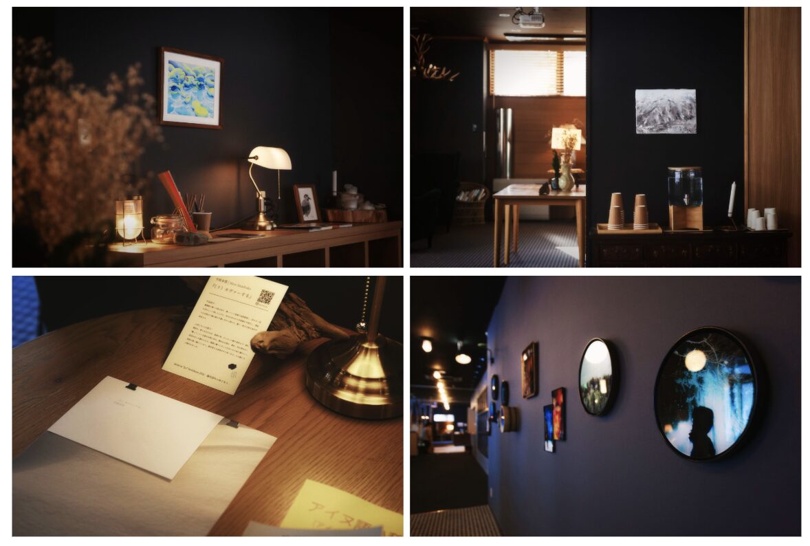 本企画は、単にホテルに滞在し作品を制作するものではなく、氷点下という過酷な環境と湯ごもりの対称性を感じとり、身体感覚や思考の変化を伴いながら創作に挑む試みとして位置づけています。結果、この地の自然や歴史に思いを馳せることではじめて見えた視点、またアーティスト同士のコミュニケーションから生まれた気づきなどが生かされた作品が数多く生まれました。そうした背景を踏まえ、「氷点下での湯ごもり、それぞれの眼差し」をテーマに、アーティストの皆様と相談しながら、それぞれの作品を館内のいたるところに展示しました。