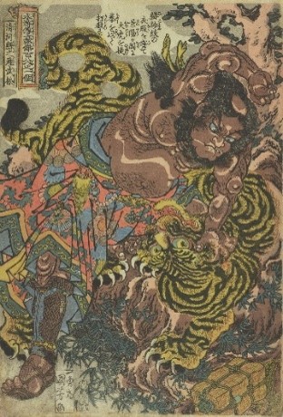 国芳の出世作としても、また日本における水滸伝ブームのきっかけの一つとしても重要な作品。当時日本に流入した中国の水滸伝図像を摂取しつつ、国芳ならではの創意にあふれた傑作である。108人の全図は確認されていないが、74図が現存する。