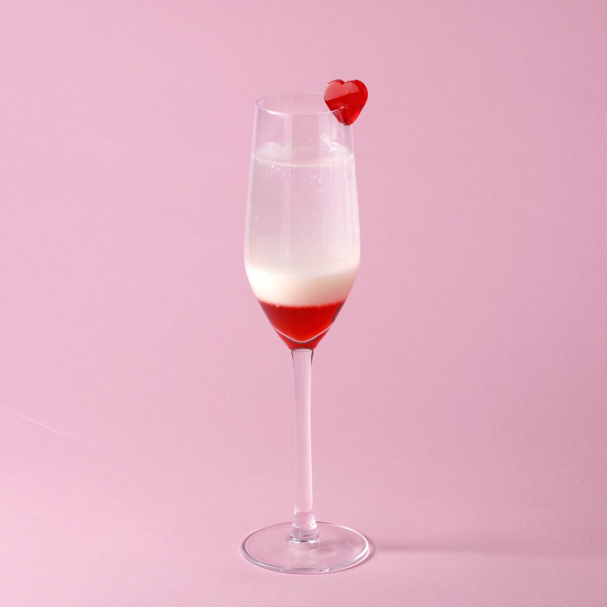 南高梅シロップと蜂蜜シロップに甘酒とソーダを合わせ、爽やかに仕上げました。仲條のアートディレクションによる『花椿』(1983年1月号表紙)の色彩を意識し、ポップなハート型のゼリーをグラスに添えた、軽やかな遊び心を感じさせる一杯です。