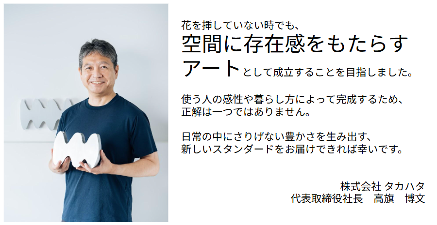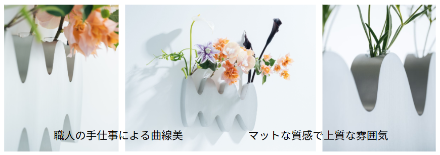 これまで床置きや卓上が主流だった花器に、「壁に浮かぶ」という新たな選択肢を提案します。