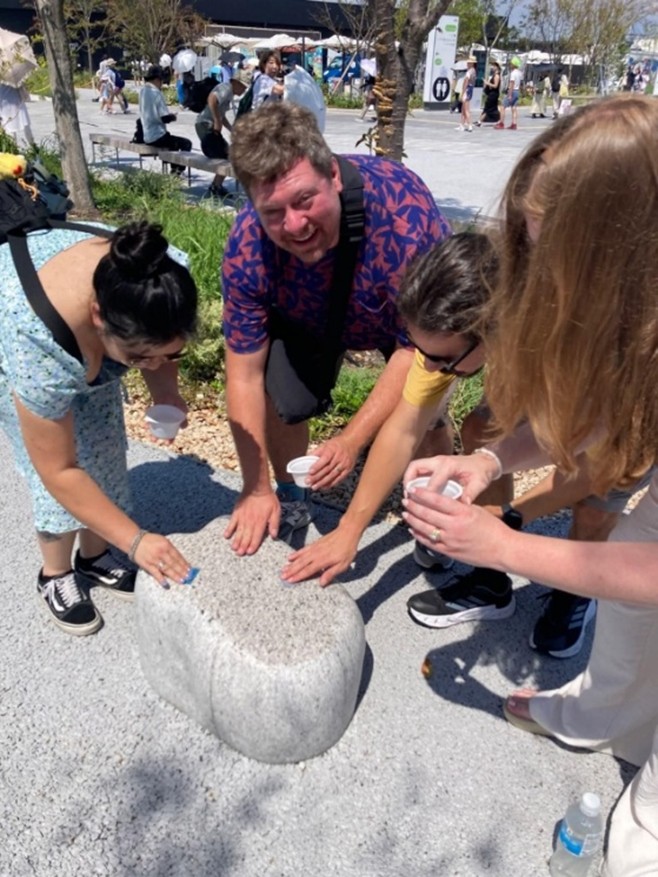 EXPO2025の会場にハートをイメージする形に彫刻をした5つの石を配置。5つの石は世界の五大陸(アメリカ・ヨーロッパ・アフリカ・アジア・オセアニア)から掘り出された石を使用。それらの石をひとつの空間に配置することで、地球はひとつであることを意味し、その石を世界から万博に訪れる全世界の人たちが一緒になり磨くことで国や文化を超えた人類の普遍的な願いである「愛」と「平和」を表現。世界中の人が力を合わせて磨いた石は永遠に輝き続け未来へのEXPO2025の記憶となった。