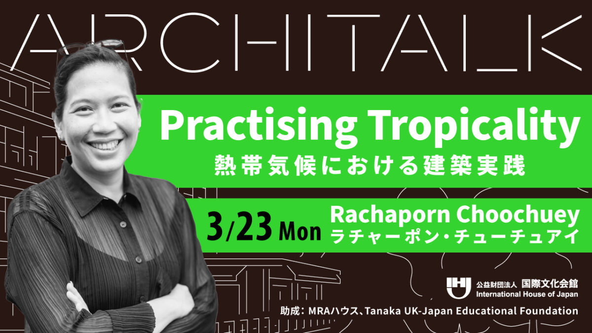 公益財団法人国際文化会館(東京都港区、理事長:近藤正晃ジェームス、以下、国際文化会館)では、2026年3月23日(月)に、タイ出身の気鋭の建築家であるラチャーポン・チューチュアイ氏をスピーカーに招聘した、「熱帯気候における建築実践」と題した講演会を開催いたします。