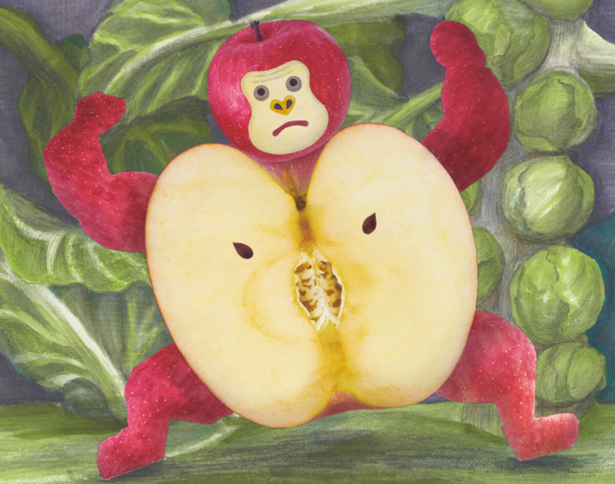 『わくせいキャベジ動物図鑑』では、野菜や果物から発想した「リンゴリラ」や「ハクサイ」などの動物がその生態や特徴とともに紹介されています。『超チョウ図鑑』には、「シャチョウ」「ゼッコウチョウ」「ビジュツカンチョウ」など思わずくすっと笑ってしまう新種のチョウが登場します。1 つの発想からじっくりとアイデアを練って広がっていくtupera tupera の制作の魅力を2 つの図鑑を通してお伝えします。