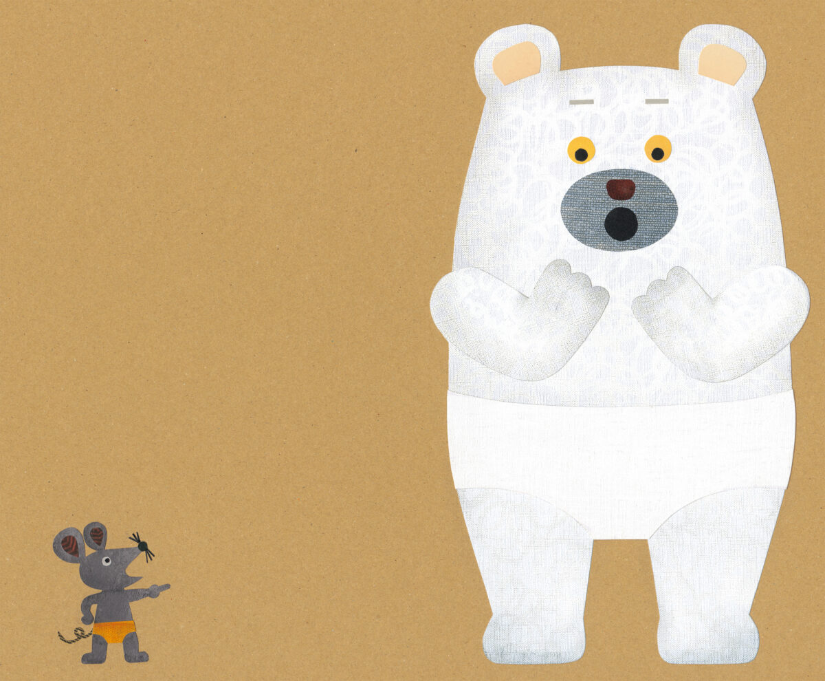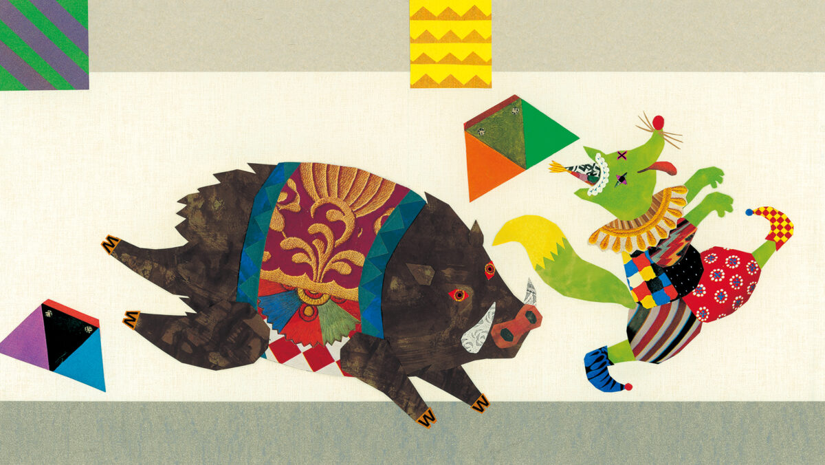 主に紙を切って貼る「貼り絵」の手法で絵を制作するtupera tupera。包装紙や雑誌の切り抜き、色紙、自身で彩色した紙など、原画では、絵本のページをめくるだけでは分からない、さまざまな素材の質感の違いや鮮やかな色合いが伝わってきます。二人の創意に富んだアイデアとともに、それを形作っている、切り出された紙の線の美しさや紙を重ねることで生まれる立体感をご覧いただきます。