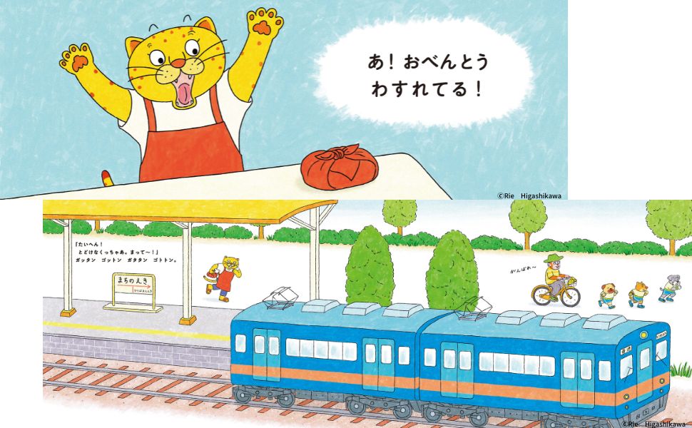 電車に乗っているお客さんも窓の外のみんなも少しずつそれぞれに物語があり、変化していくところも面白かったです。読み聞かせしたら盛り上がりそうです。