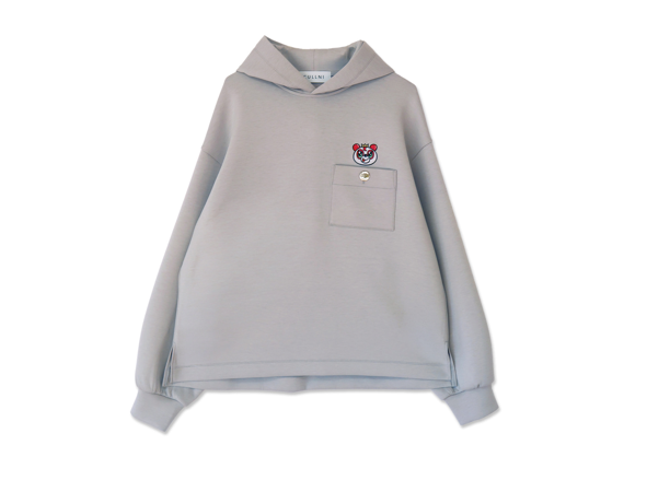 青山氏の手書きサインとエディションナンバー入り、名古屋展・新宿展あわせて2色合計限定130着販売。膨らみのある、ふっくらと空気を含んだような着心地のダンボール素材のプルオーバーフーディ。ゆったりと広く取った身幅と、立体的でしっかりと立ち上がるフードが特徴です。左胸には青山氏が手掛けたキャラクター刺繍を施し、刺繍の下にはCULLNIオリジナルのゴールドボタン付きポケットを配しています。