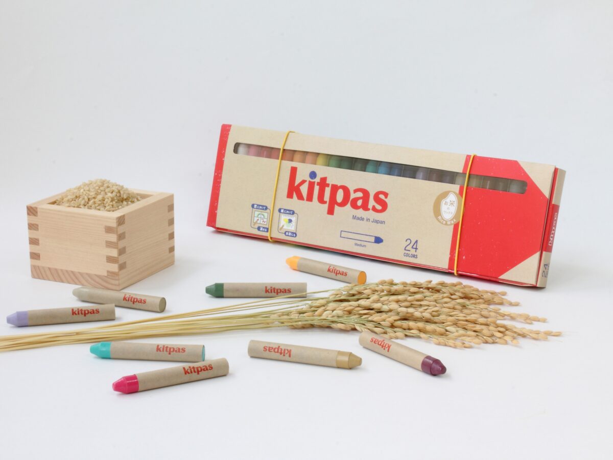 キットパスは、窓ガラスなどの平滑面に描いて水で消すことができる筆記具です。主原料にはお米のワックスを使用し、子どもから大人まで安心して使える描画材として、日本国内だけでなく海外でも利用されています。