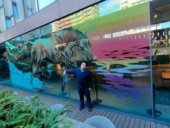 アーティスト マツナガマサエ氏 によるウィンドウアート