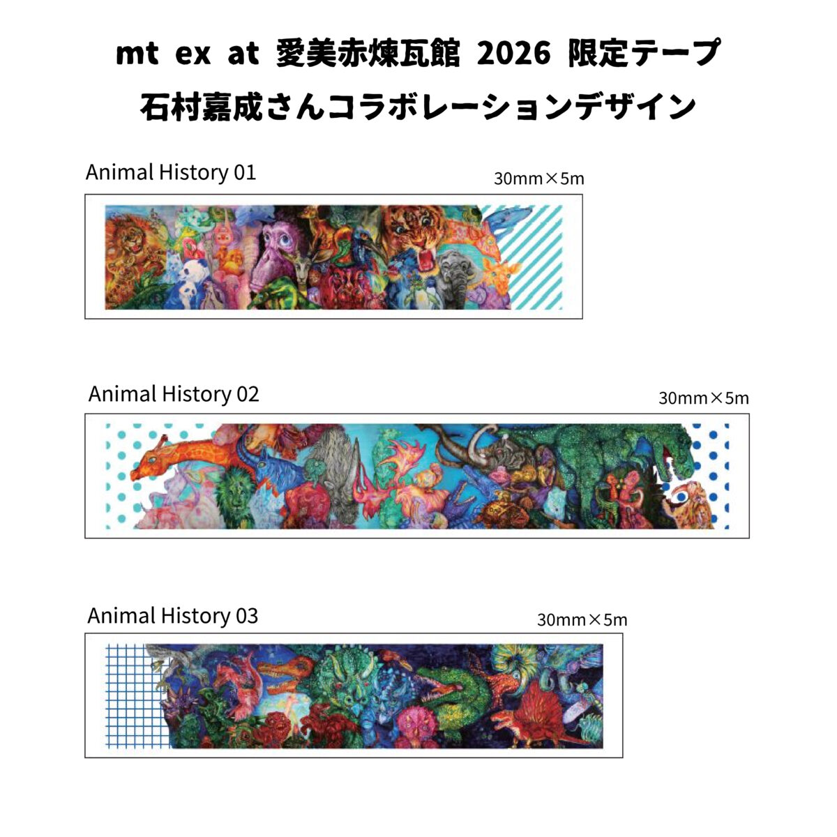 石村さんのアート作品をmtでアレンジした会場限定テープに加え、和紙素材の打ち抜きシールも会場限定販売いたします。
