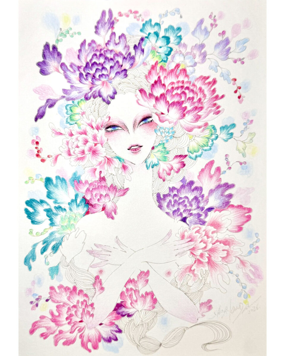 現代アーティスト。音・舞・衣・香・食などさまざまな表現を巻き込み、五感を満たす独自のセレモニーアートパフォーマー「踊絵師」としての活動が舞台芸術として評価され、中国や欧米、カザフスタン、インドなど世界各地に招聘される。2020年「女神開花」「聖なるエロス解放」をテーマとした作品シリーズをスタート。死生観に於ける命の源としての“性”に向き合い、自らを愛し直すことの重要性を作品に込めている。NISSAN、Canon、ALFA ROMEO等企業コラボレーション多数。開催個展に、岡谷美術考古館(2023)、ニューヨークNIPPON GALLERY(2023)等。