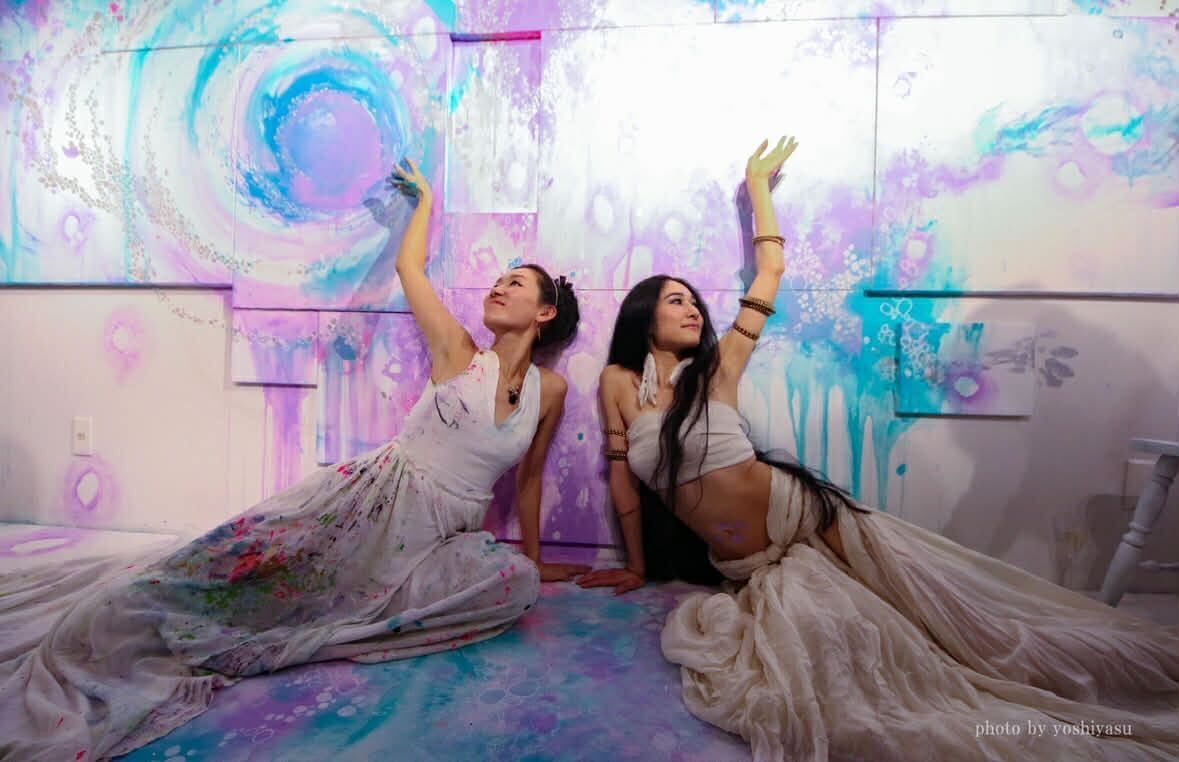 色彩が空間一面に咲き広がり、羽衣のようにゆらめくドレスと幻想的な音楽が、訪れる人を恍惚の世界へと誘います。