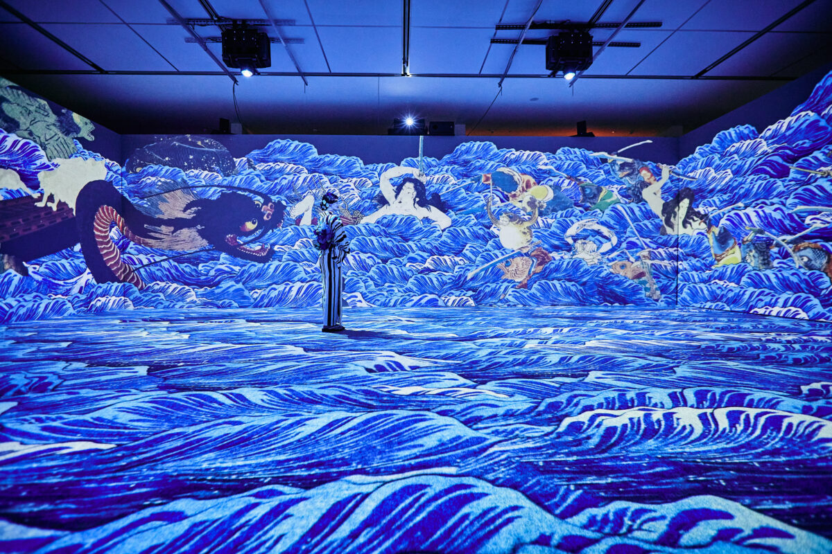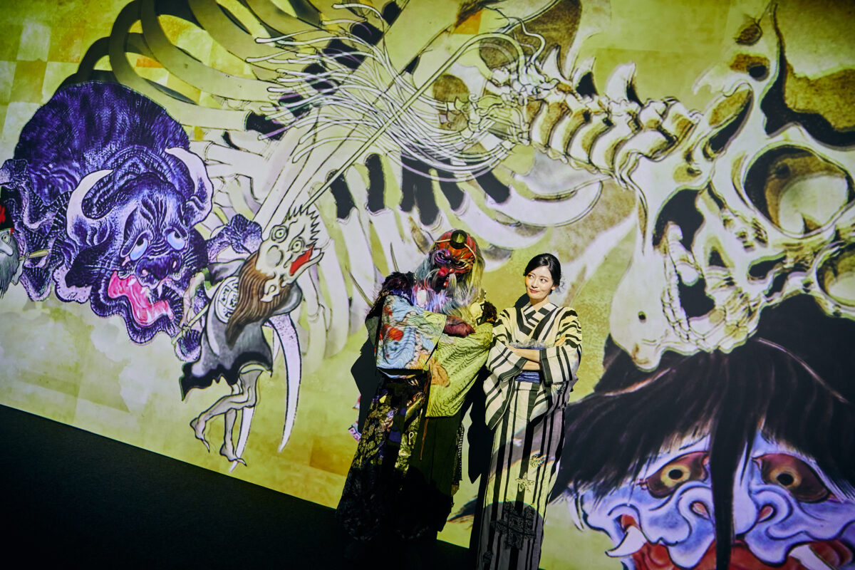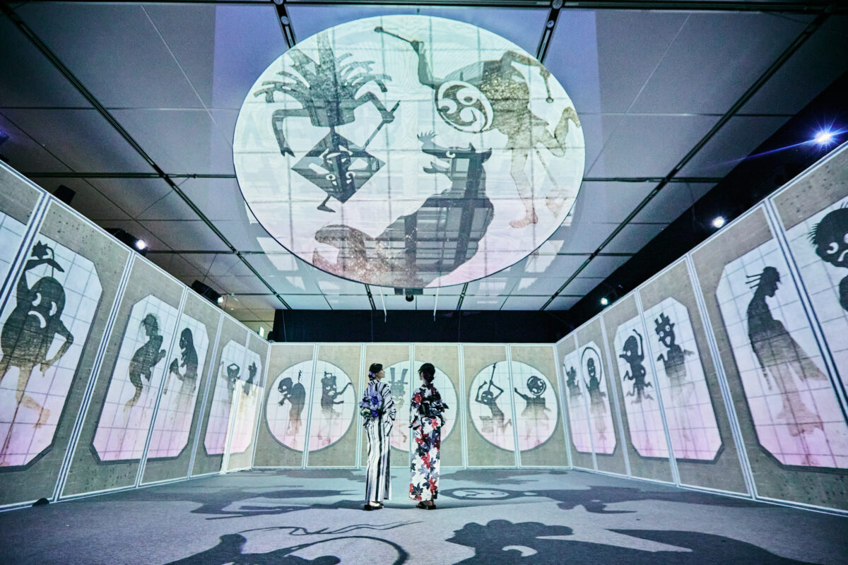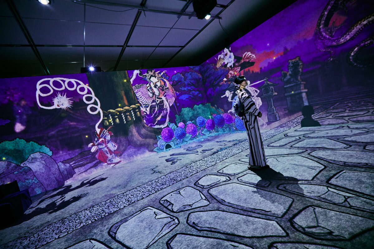 江戸・明治時代など様々な絵師によって描かれた「百鬼夜行絵巻」「百物語」「鬼」「天狗」「河童」「付喪神」などの日本が誇る妖怪美術に最先端の映像技術と立体造形で没入できる世界初のイマーシブ体感型デジタルアートミュージアムです。