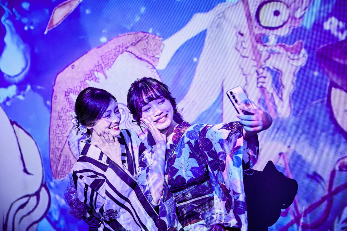 鑑賞するだけでなく、妖怪たちと一緒に動画や写真撮影をしたり、妖怪絵巻の一部となって異世界に迷い込む没入体験が楽しめます。