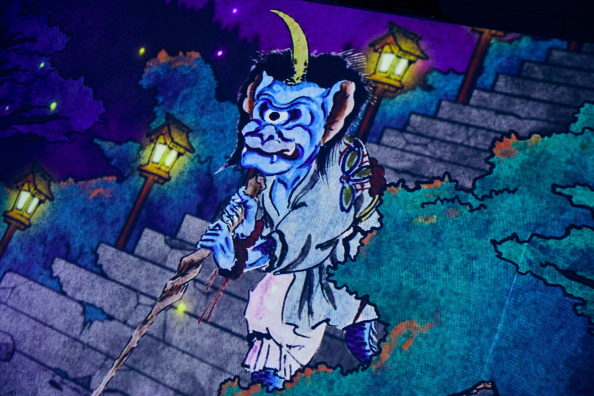 映像空間だけでなく、立体造形によってリアルに再現された妖怪たちも見どころのひとつ。鬼や天狗、河童、付喪神など、ユーモラスな妖怪たちが現実の空間に登場します。細部まで作り込まれた立体造形とイマーシブ演出のコラボレーションで、妖怪たちの表情や質感を間近で楽しめます。