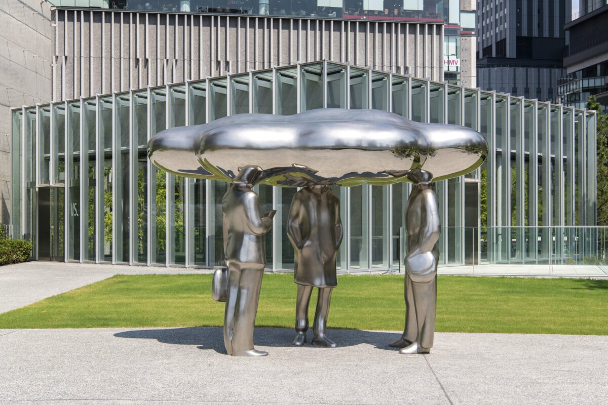 作品概要:本作のヒトに表情はなく、手足の肌や形にも個人を特定するようなディティールはありません。毎日忙しなく動く目や手を止め、芝生広場に立ち止まってゆっくりとこの作品を眺めてみましょう。力ない姿勢でうなだれる匿名性の高い姿に、私たちは自分や誰かの似姿を、あるいは胸に潜めていた感情を、自由に重ねることができるのではないでしょうか。