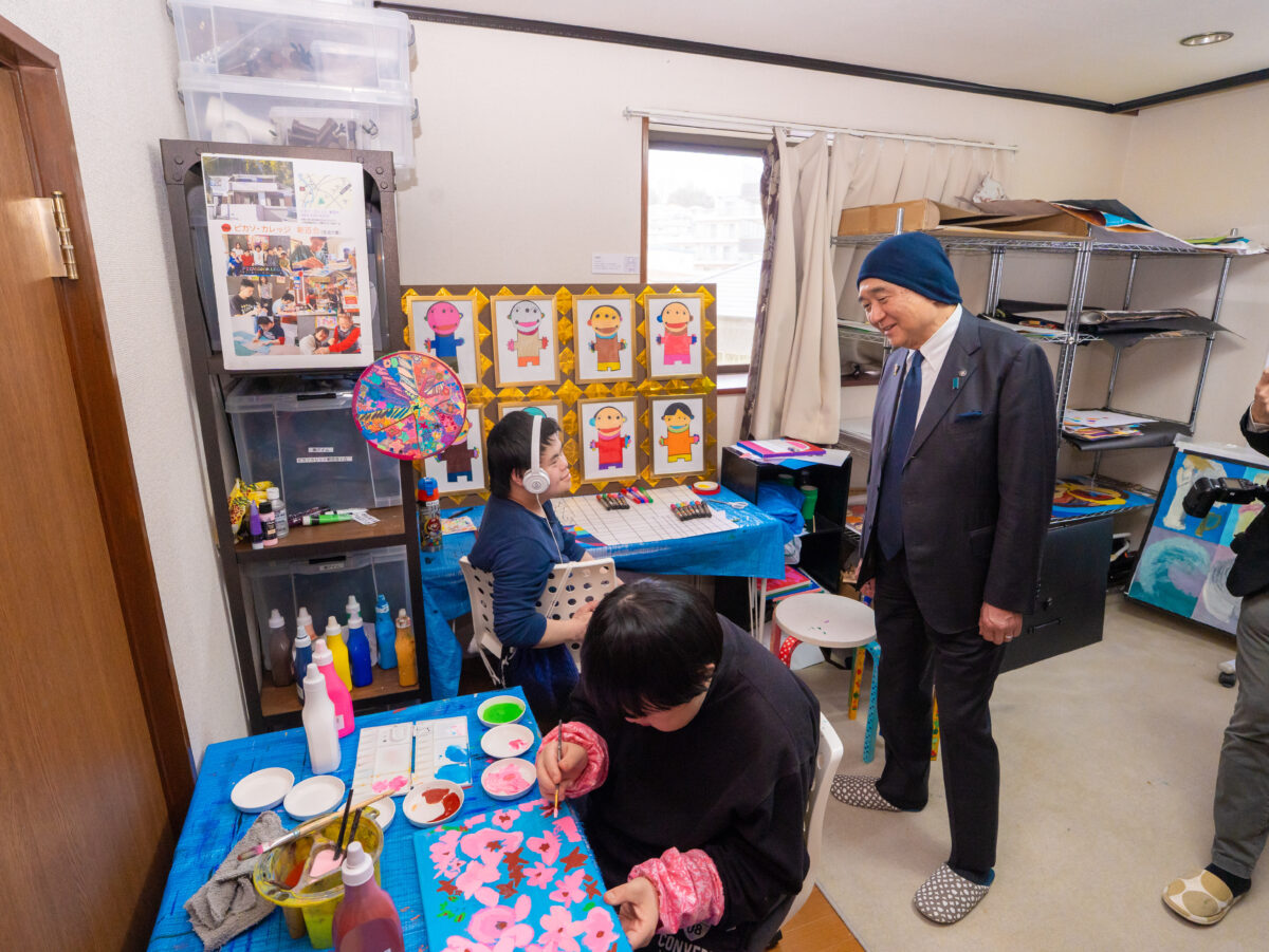 知事は、一人ひとりが自らの感性を爆発させる姿に「これこそが『ともに生きる社会』の理想形ですね」と称賛。福祉という枠組みを超え、新しい社会のあり方を体現する施設として高く評価されました。
