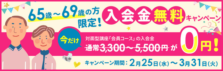 さらに、65歳以上の方は入会金5,500円が無料になるキャンペーンを実施中。