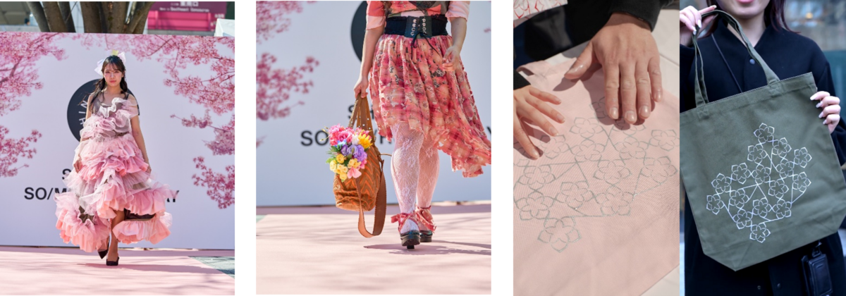 開幕後初の週末となった3月14日(土)には、新宿駅東南口駅前広場に組まれた特設ステージでファッションイベント「SHINJUKU SO/ME/RU RUNWAY」を開催。新宿の地場産業である染色業と学生の創造性をつなぐ企画として、国際ファッション専門職大学と東京モード学園の学生が、新宿区内の工房で染色された素材と古着をミックスさせ、「さくら」をテーマに作品を制作。新宿のランウェイで披露しました。サステナブルで創造的な未来を楽しめる一日となりました。