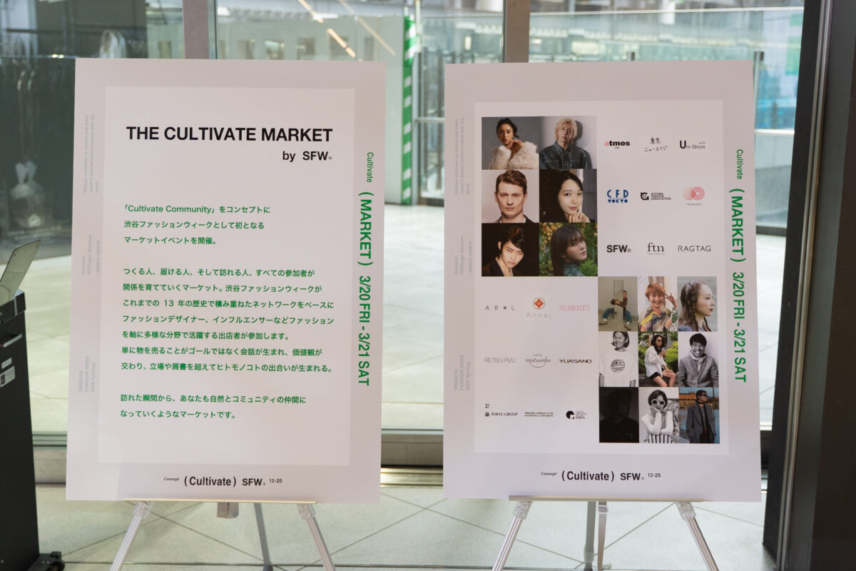 今回、新しい試みの1つとして渋谷ファッションウィークで初となるマーケット「THE CULTIVATE MARKET by SFW®」が、本日より2日間限定※で、渋谷サクラステージSHIBUYAタワー3階 イベントスペース「BLOOM GATE」(渋谷区桜丘町1-1)にてスタートしました。