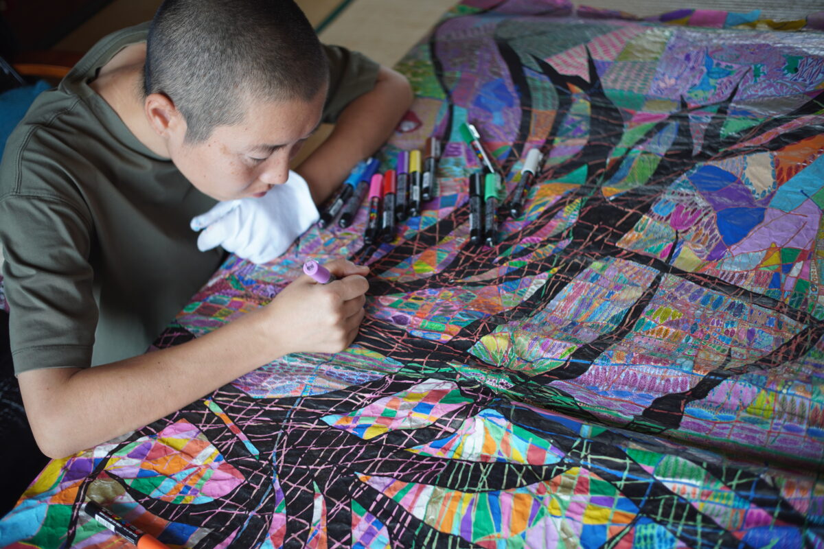 真っ白な紙は緊張してしまうため、米袋を切り開いてキャンバス代わりとし、そのシワをなぞるように描き始める。凹凸や破れを活かしながら、繊細な描写で独自の世界を広げていく。作品を通じて、自分自身や病気への理解が広がることを願い、創作活動を続けている。HERALBONY Art Prize 2024 にてグランプリを受賞。将来の夢は、アメリカの美術館で作品を展示すること。