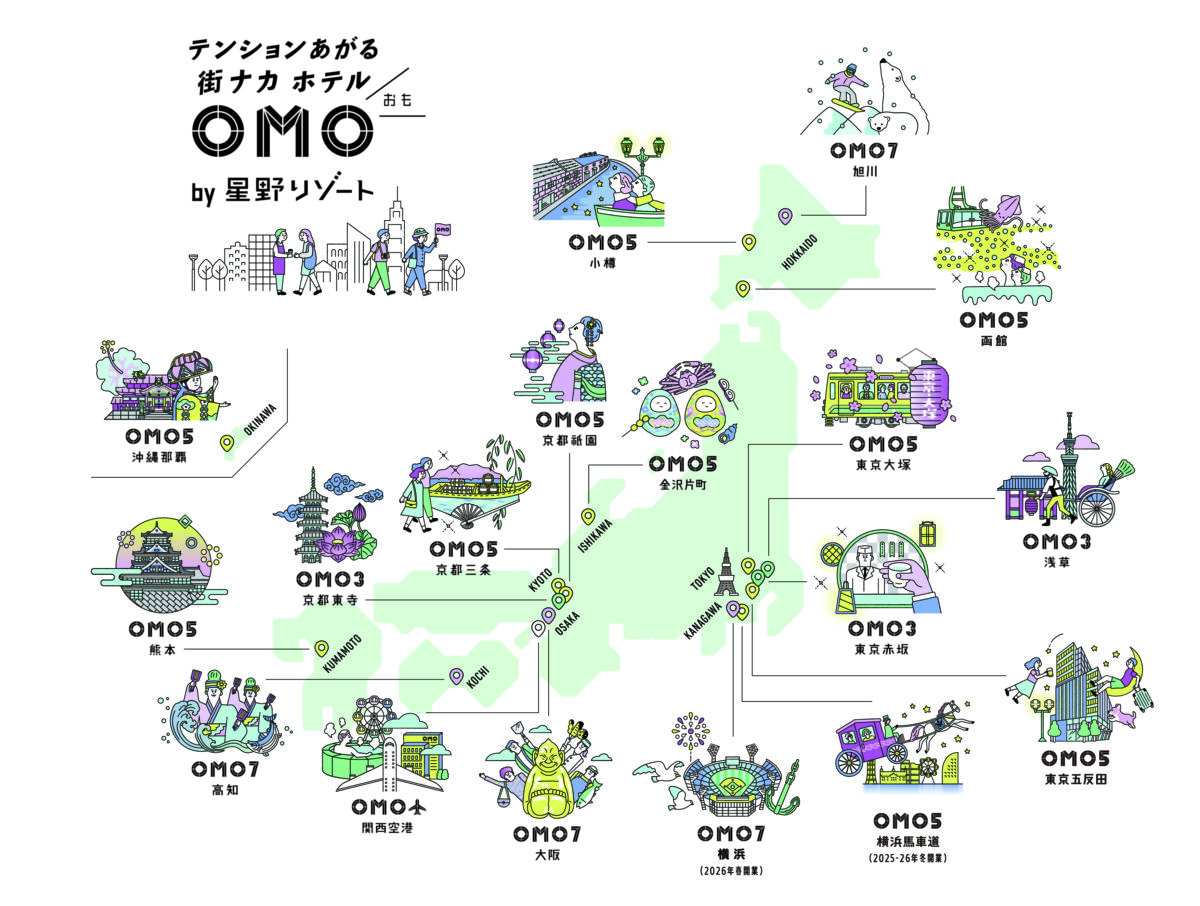「OMO」は星野リゾートが全国に展開する「テンションあがる『街ナカ』ホテル」。街をこよなく愛するスタッフが地域の方々と仕掛ける、新感覚のホテル。思いもよらない魅力に出会い、知らず知らずのうちにその街までお気に入りに。現在17施設を展開。2026年1月に開業した「OMO5横浜馬車道」に続き、4月には「OMO7横浜」の開業を予定しています。