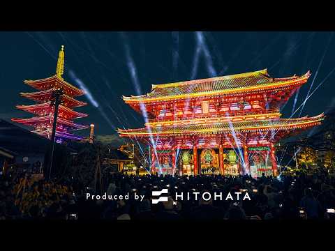 浅草寺の1400年の歴史と文化の融合をテーマに、宝蔵門、五重塔、二天門を舞台として、貴重な文化財の数々を特別に活用した史上初のプロジェクションマッピングです。