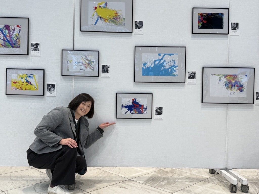 展示会のご感想「冬都が視線入力で描いた作品は、玄関の白い壁に飾ります!白い壁に本当に映える作品です。メディアテークで作品を展示したように、画廊等での展示会もありかなと。重い障害を持つ方々が、アーティストとして認知してもらえるような作品ができるといいなと思います。夢ですね」