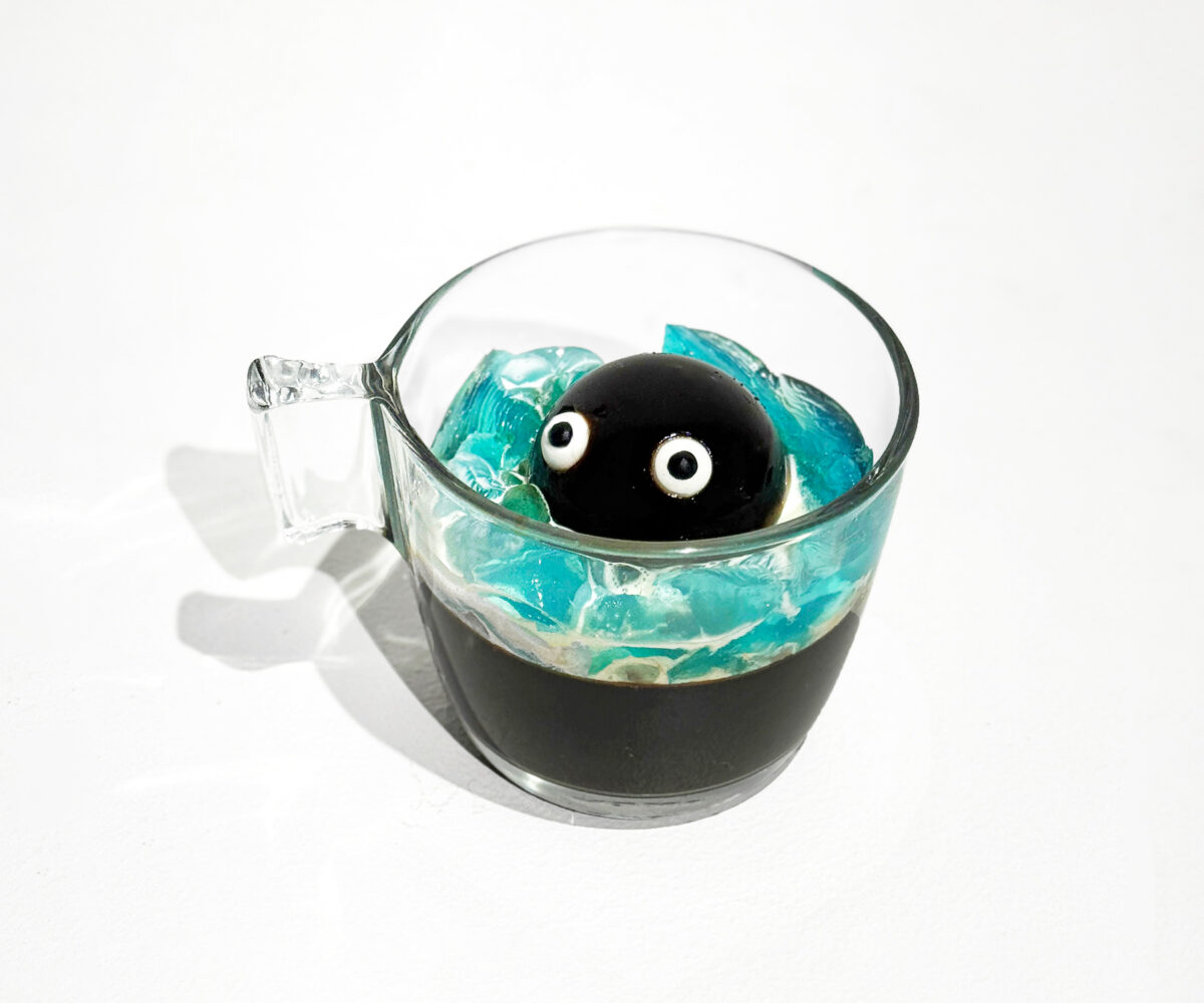 甘さ控えめのコーヒーゼリーをベースに、ブルーハワイゼリーとクリームで海坊主が荒れた浪間から顔を出している様子を表現しました。