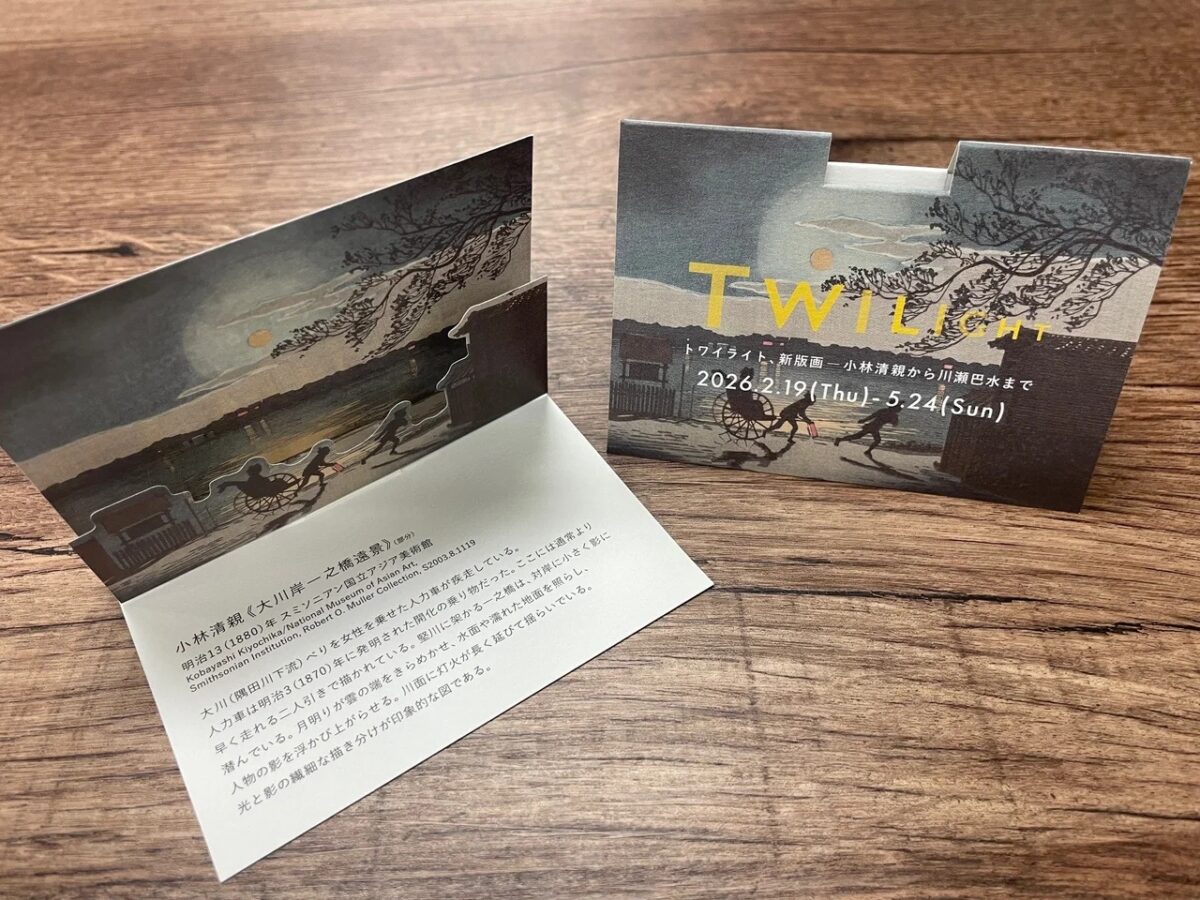 また、開館記念日の4月6日(月)に「トワイライト、新版画―小林清親から川瀬巴水まで」(以下「トワイライト、新版画」)にご来場いただいた方全員に、オリジナルノベルティをプレゼントいたします。