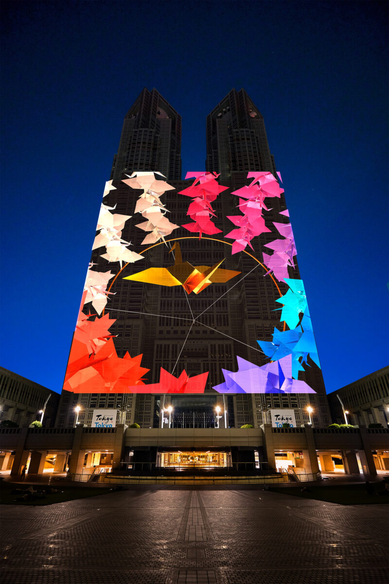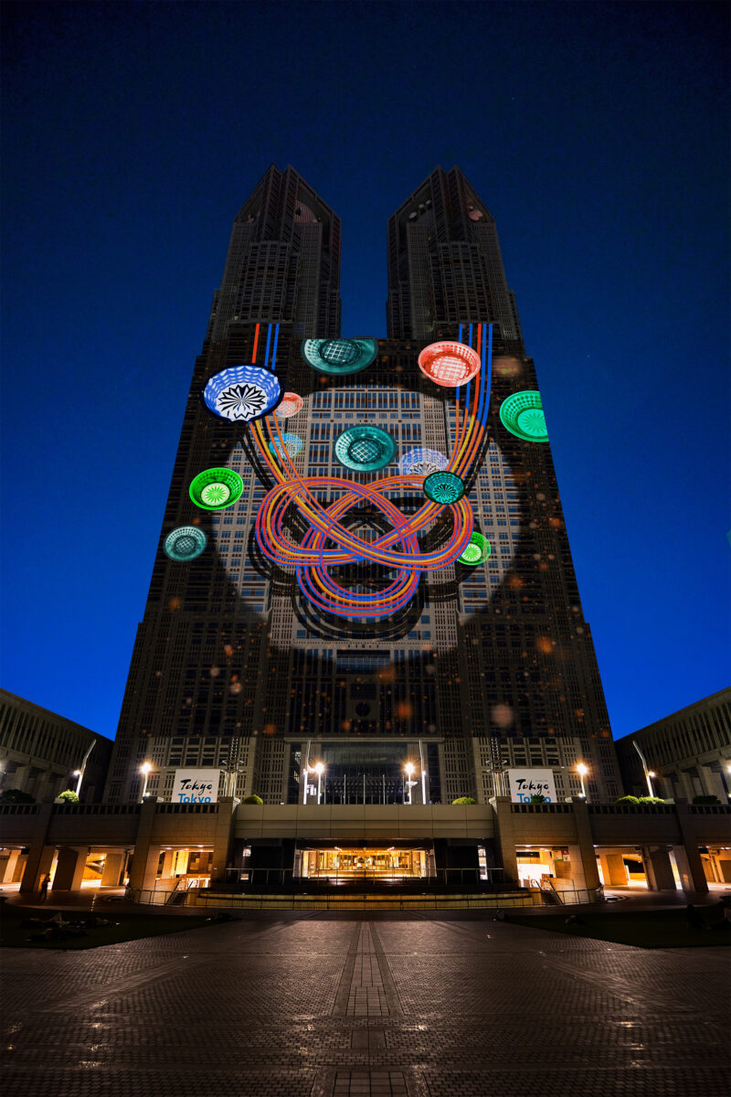 東京都では、夜間の観光振興の活性化に向けて、東京の夜を彩る新たな観光資源を作るため、代表的なランドマークである都庁第一本庁舎をキャンバスに光と音で多彩なアートを表現するプロジェクションマッピングを通年で上映しています。