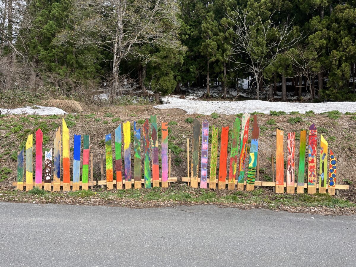 山本晶ワークショップ「木に絵を描いて、大きな木を作ろう」展示風景