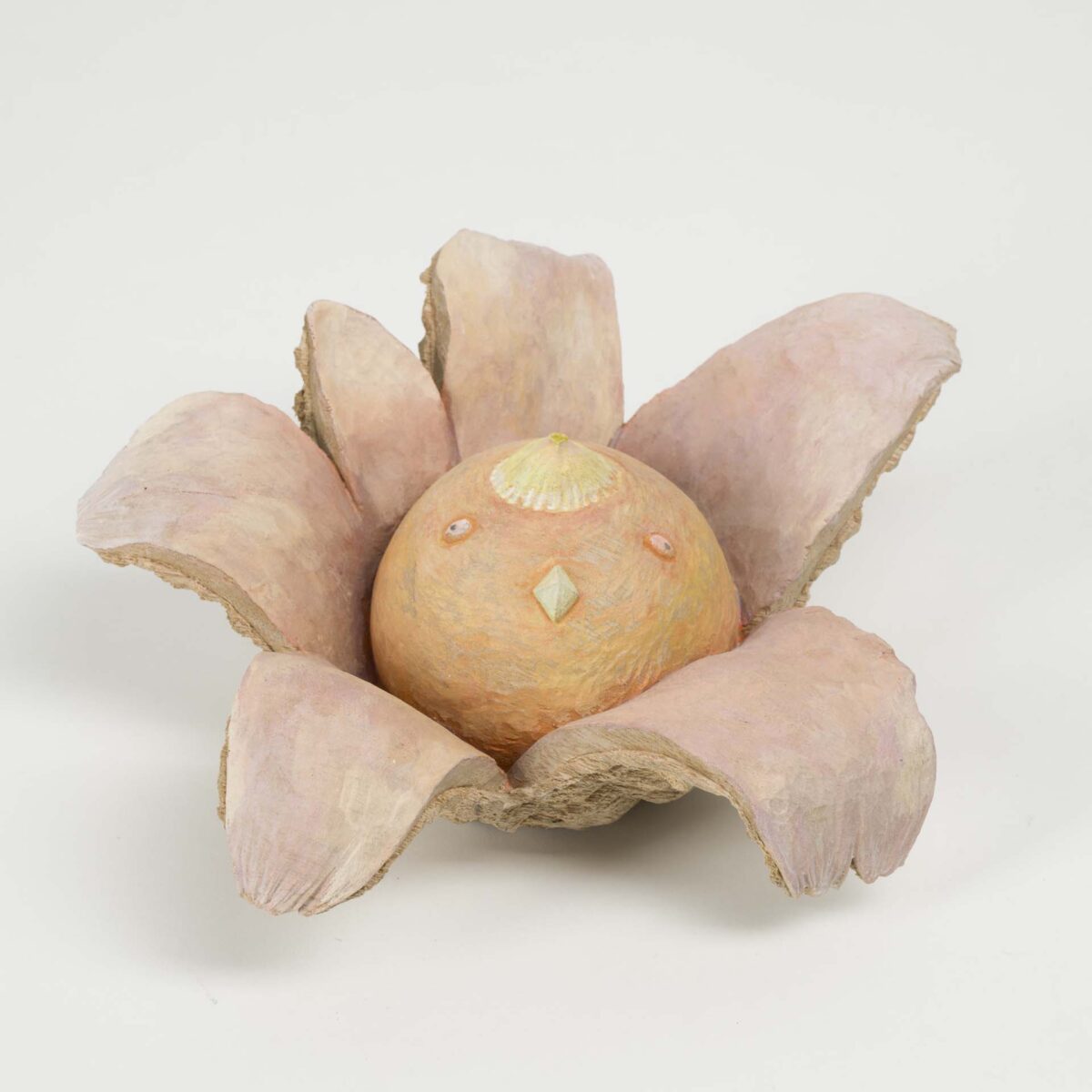 かか/1995年生まれ。女子美術大学大学院研究科美術専攻立体芸術修了。平安時代の木像技法「一木(いちぼく)造り」、檜や岩絵具といった伝統的な素材を使い、きのこや架空のキャラクターをモチーフにした木彫作品を制作。ポップな印象のなかに複雑な深みがある作風が特徴。