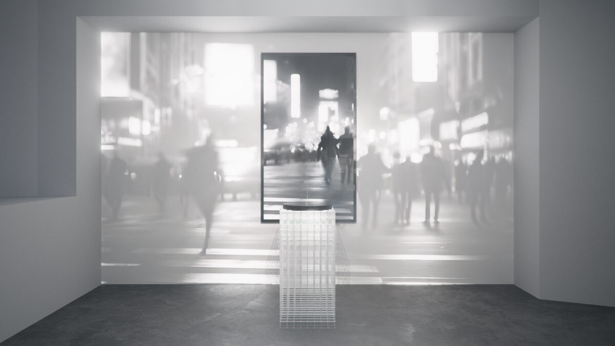 映し出される映像は、AIが膨大なデータから人の記憶を再編集した、誰のものでもない普遍的な風景。しかしその匿名の風景が、鑑賞者一人ひとりの記憶や感情に結びつく引き金となる。光と映像のあわいに、外界と内面、自己と他者、AIと人間の境界を曖昧にしながら、生活、記憶、感情といった人の連なりを顕在化させる。本作を通して、記憶のかけらが織りなす情景のコラージュを体験する場の創出を試みる。