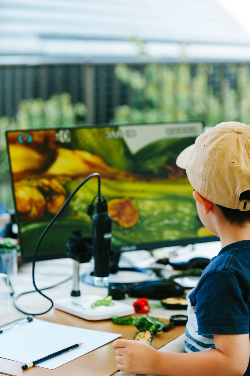 野菜や果物を観察し、その味わいの源をたどるアトリエです。マイクロスコープ越しに広がるミクロの世界には、肉眼では気づかなかった不思議な模様やテクスチャーが現れます。観察のあとは、ぜひトーキョージュースの店舗へ。アトリエで見つめた野菜や果物から生まれたジュースの味を確かめてみてください。