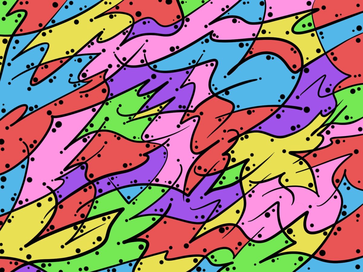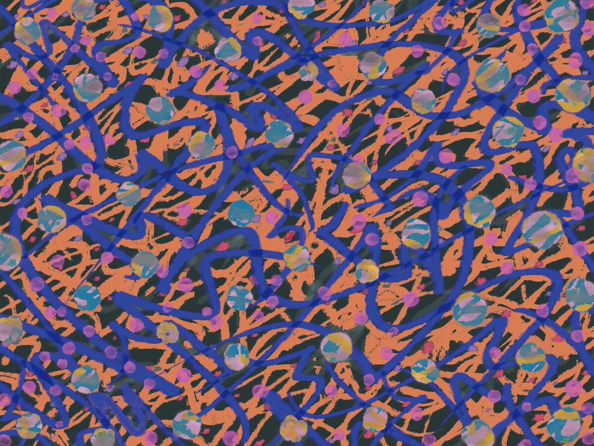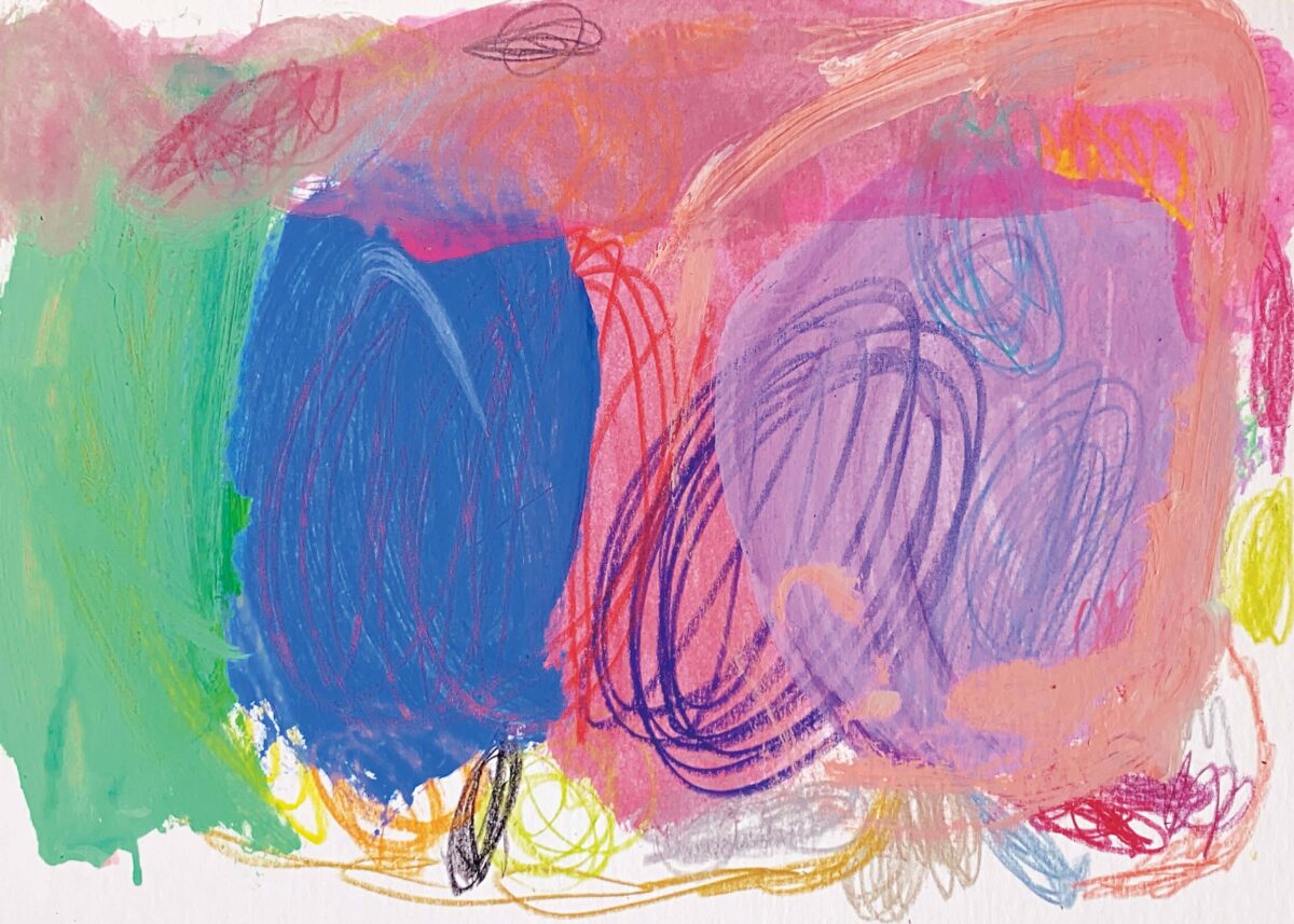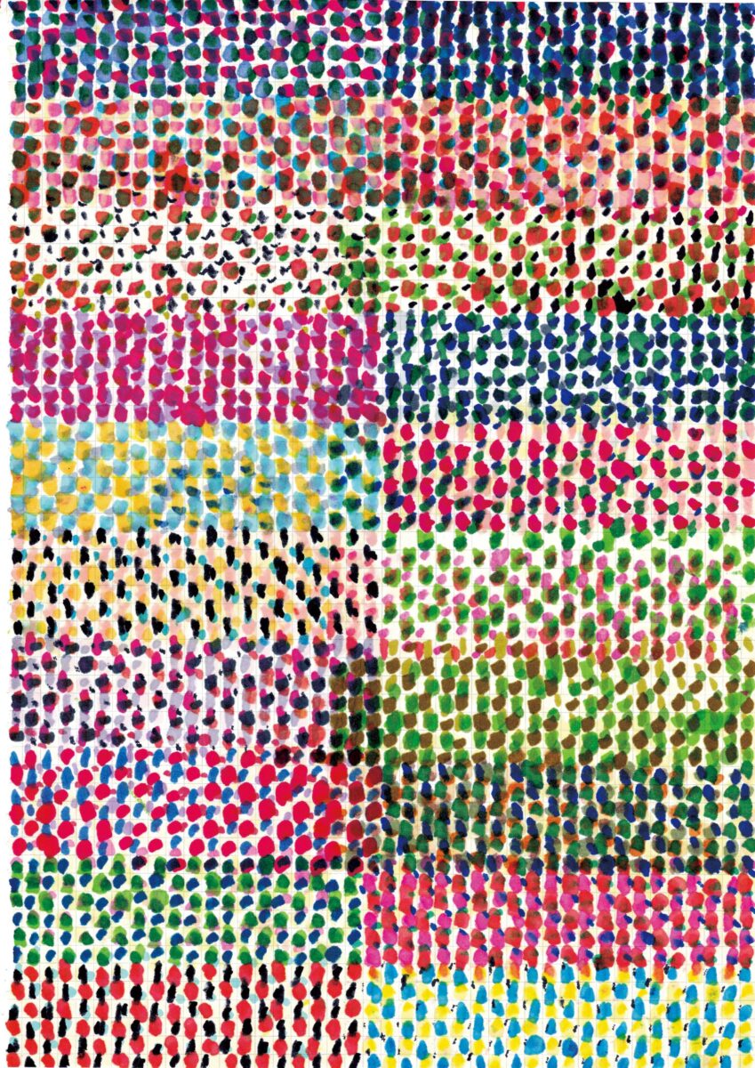 思いついた色が迷いなく紙の上に置かれ、インスピレーションは猛烈なスピードで形を変えながら作品へと落とし込まれる。