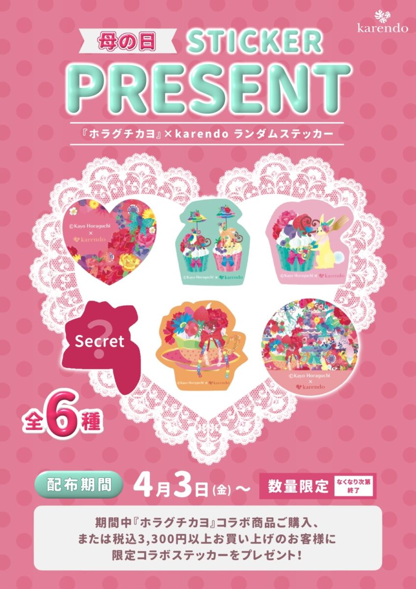 【店舗限定】「ホラグチカヨ」×karendoランダムステッカーをプレゼント